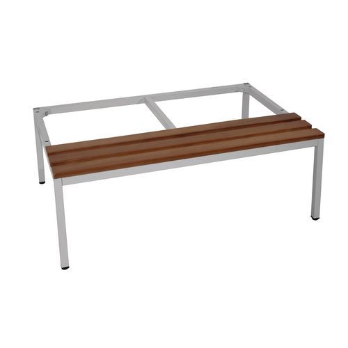 Kovové profily s povrchovou úpravou práškovým lakem. Sedací plocha ze 3 lakovaných dřevěných latí.