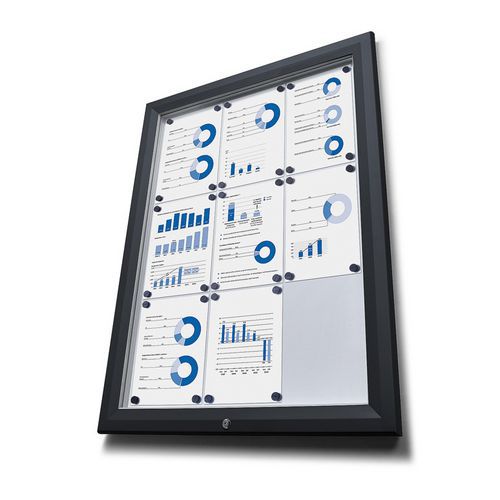 Magnetické vitríny s černým hliníkovým rámem vhodné do exteriéru.