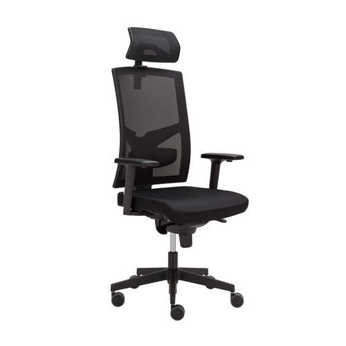 Kancelářská židle Manager VIP Sun s textilním sedákem a opěradlem z prodyšné síťoviny a hlavovou opěrkou.