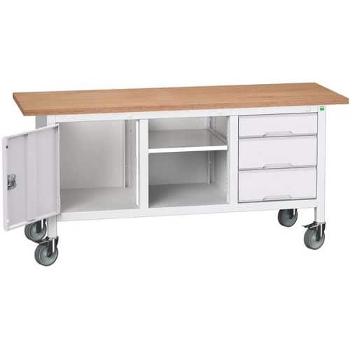Dvě pevná a dvě otočná kola s brzdou o průměru 12,5 cm.Série nábytku Bott Cubio: prémiové řešení dílenského vybavení Série nábyteku Bott Verso: kvalita a funkčnost za výhodnější cenu Pracovní deska Multiplex: vrstvená buková překližka lepená pryskyřicí. Odolná pracovní deska vhodná pro většinu aplikací. Pracovní deska Linoleum: jádro z dřevotřískových desek a 2 mm linoleovým povrchem s odolným plastovým lemováním hran. Snadno čistitelná deska pro všeobecné použití Ideální do kanceláře, montážní a skladovací prostory. Vnitřní rozměry zásuvek: 7,5 cm: v x š x h: 5,5 x 40 x 40 cm 10 cm: v x š x h: 8 x 40 x 40 cm 15 cm: v x š x h: 13 x 40 x 40 cm 20 cm: v x š x h: 18 x 40 x 40 cmDodáván skompletovaný k okamžitému použití.