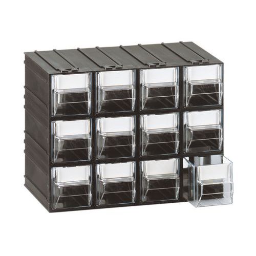 organizer s dvanacti zasuvkami vyrobeny z narazuvzdorneho plastu.