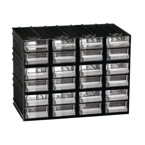 organizer se dvaceti ctyrmi zasuvkami vyrobeny z narazuvzdorneho plastu.