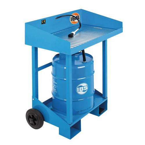 Sešlápnutím nožního spínače se čerpadlo uvede do provozu a během mytí znečištěných dílů stéká použitá kapalina zpátky do sudu, kde se špína samostatně odděluje a usazuje na dně sudu.