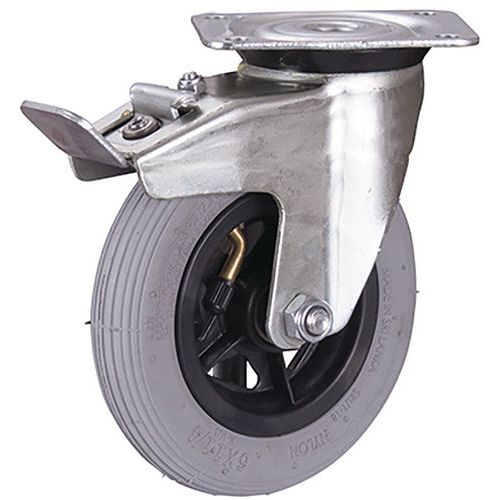 Otočná pneumatická kola s brzdou na ocelovém ráfku s válečkovým ložiskem.