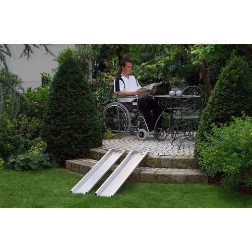 Hliníkové nájezdové rampy s využitelnou šířkou 21 cm.