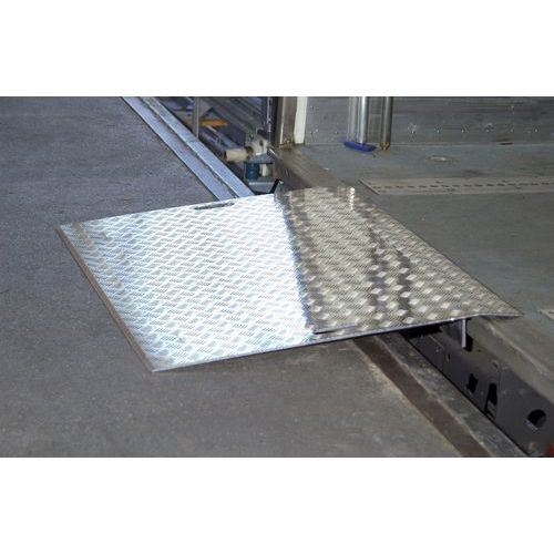 Mobilní nájezdový můstek s protiskluzovým povrchem.
