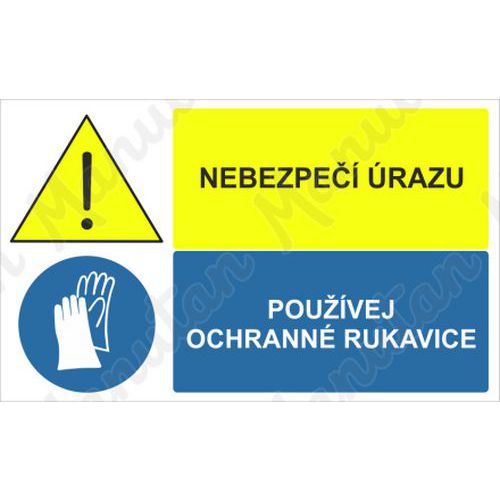 Používá se k označení míst a objektů, kde je potřeba při práci používat ochranné rukavice z důvodu nebezpečí úrazu.