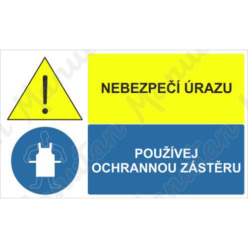 Nebezpečí úrazu používej ochrannou zástěru, samolepka 95 x 57 x 0,1 mm