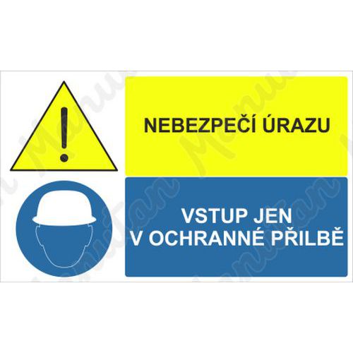 Nebezpečí úrazu vstup jen v ochranné přilbě, samolepka 95 x 57 x 0,1 mm