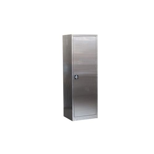 Dílenská skříň svařovaná kompletně z nerezové oceli je vybavena čtyřmi policemi přestavitelnými v rastru 25 mm. Skříň je uzamykatelná pomocí cylindrického zámku s bezpečnostním dvoubodovým rozvorovým mechanismem. Vhodná do prostor, kde je vyžadována chemická odolnost a dobré hygienické vlastnosti.