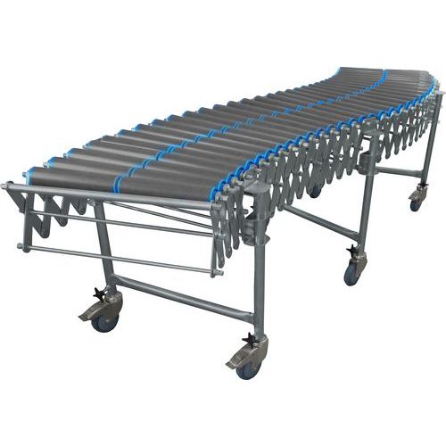 Nůžkový dopravník s plastovými válečky je vhodný pro zhotovení přímých a zatáčkovitých tratí, spádových i rovinných. Sklon je možné seřídit pomocí výškově stavitelných noh. Bez nutnosti postranního vedení.