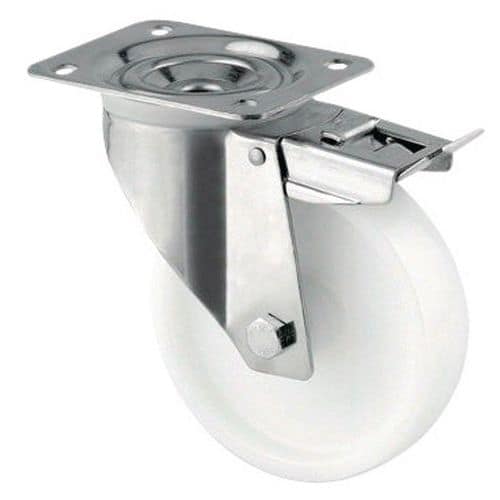 Nylonové otočné kolo s brzdnou, nosnost: 400 kg, celková výška: 200 mm