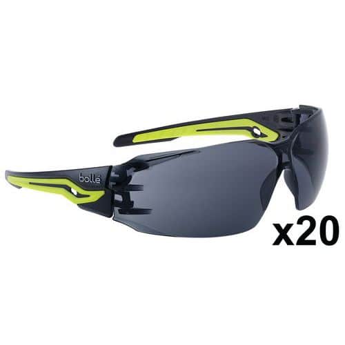 Polykarbonátové brýle se štíhlými pružnými postranicemi nezpůsobující tlak a možností nastavení úhlu zorníku. Vhodné pro použití s přilbou nebo maskou, při práci ve stavebnictví a skladech.Normy: EN 166, EN 172