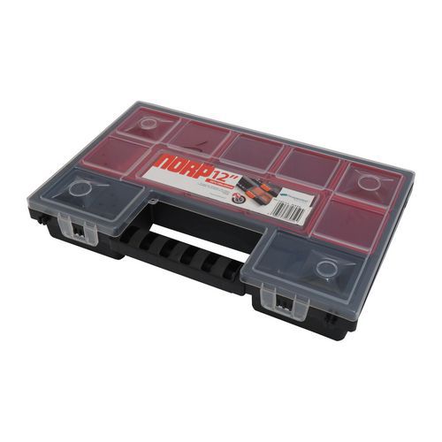 Plastový organizér pro uložení drobného materiálu do čtyřiadvaceti přestavitelných přihrádek.