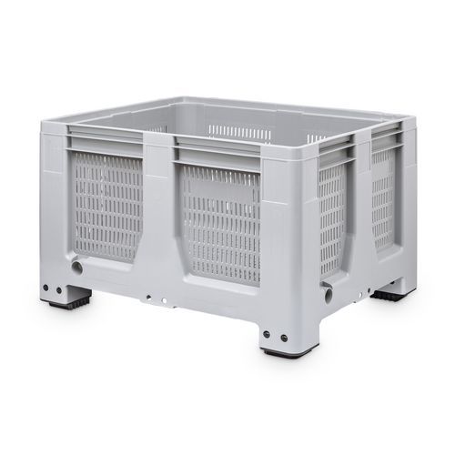 Plastový paletový kontejner se třemi ližinami a pevnou konstrukcí je odolný vůči chemikáliím, plísním a korozi a je snadno omyvatelný.