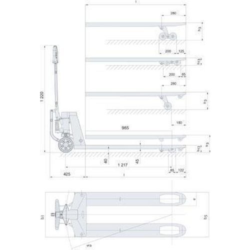 Paletový vozík se zvýšenou nosností z nerezové oceli vhodný k práci ve vysoce korozivních prostředích a v prostředích s vysokými nároky na hygienu, např. potravinářské nebo farmaceutické provozy. Pevná konstrukce, vysoce kvalitní nerezová ocel.