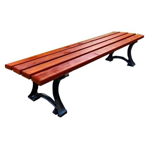 Rovná kovová lavice s dřevěným sedákem určená do parků a měst.