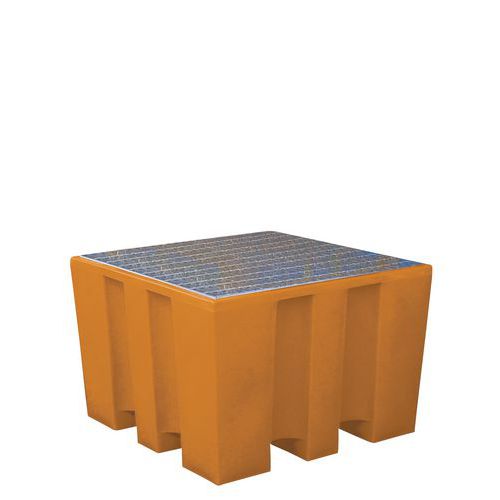 Stohovatelná záchytná vana z polyetylenu pro skladování malých nádob.