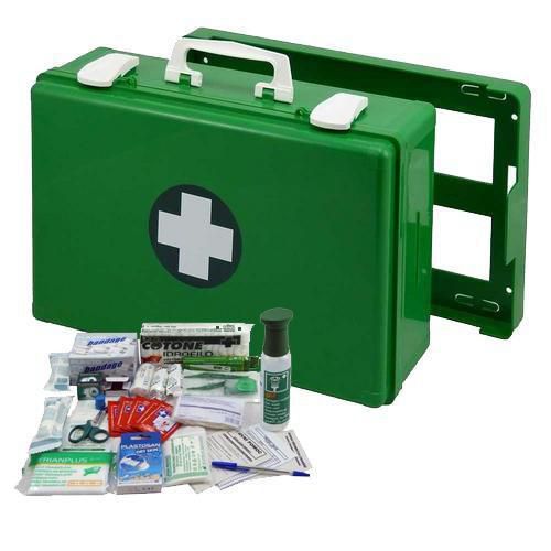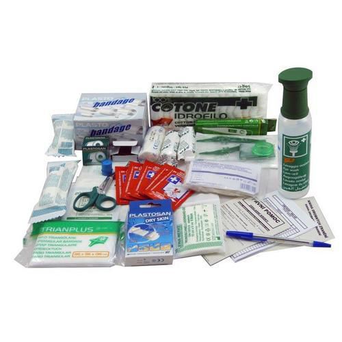Náhradní náplň do lékárničky obsahuje základní zdravotnický a obvazový materiál pro poskytnutí první pomoci, který byl sestaven na základě rizik vyskytujících se stavbách a stavebních provozech.balení obsahuje: 2x obvaz 7 cm x 5 m; 3x obvaz hotový sterilní č. 3; 3x obvaz hotový sterilní č. 4; 3x obvaz elastický 10 cm x 4 m; 1x pryžové obinadlo škrtící; 1x sterilní krytí 5 x 5 cm; 1x sterilní krytí 7,5 x 7,5 cm; 1x sterilní krytí 10 x 10 cm; 8x náplast s polštářkem 6 x 10 cm; 100x náplast s polštářkem mix. 8 rozměrů; 1x náplast fixační 2,5 cm x 5 m; 1x pinzeta sterilní; 1x rouška resuscitační; 1x oční výplach 0,9% NaCl - 250 ml; 1x trojcípý šátek, 2 páry rukavice vyšetřovací; 1x digitální teploměr; 1x nůžky; 1x vata 50 g; 1x tvarovací dlaha BOSTON splint – velká; 5x desinfekční utěrka; 12x špendlíky zavírací – nerez; 1x příručka první pomoci; 1x kniha úrazů; 1x tužka