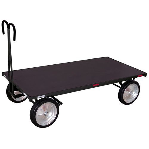 Svařovaný ocelový plošinový vozík s tažným madlem.