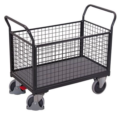 Plošinový vozík se dvěma madly s mřížovou výplní a bočními stěnami, do 500 kg, 101,5 x 119 x 60 cm, šedý