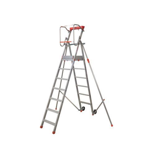 Pojízdný skládací hliníkový plošinový žebřík, 4 stupně