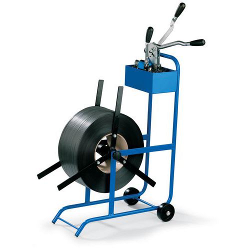 Pojízdný odvíječ je díky nastavitelné šířce i průměru bubnu univerzální pro všechny rozměry dutinek polypropylenových vázacích pásek.