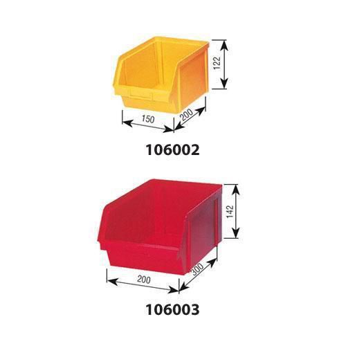 Stacionární policový regál s plastovými boxy Unibox má přestavitelné police v rastru 4 cm.