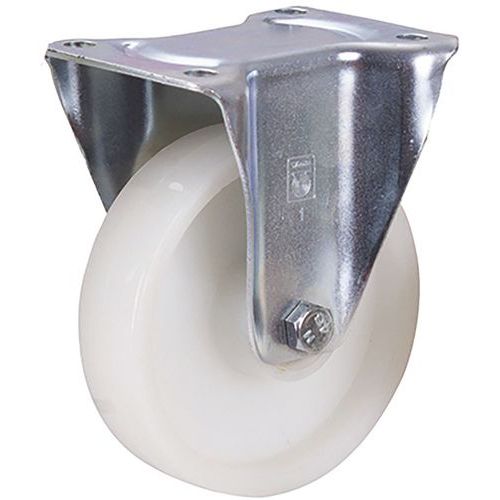 Bílé pojezdové kolo z polyamidu s přesnými kuličkovými ložisky.