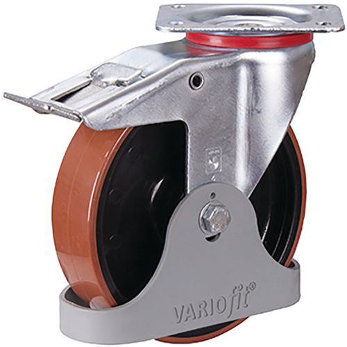 Polyuretanové pojezdové kolo s přírubou, 200 x 50 mm, kuličkové ložisko, otočné s brzdou