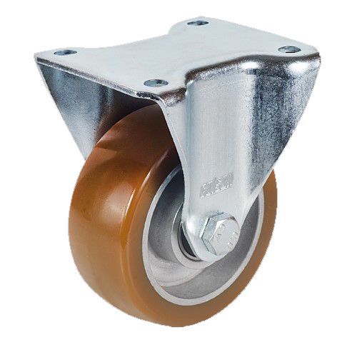 Transportní pevné kolo s přírubou o průměru 100 mm s polyuretanovým běhounem.
