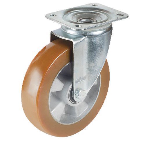 Polyuretanové transportní kolo s přírubou, průměr 160 mm, otočné, kuličková ložiska