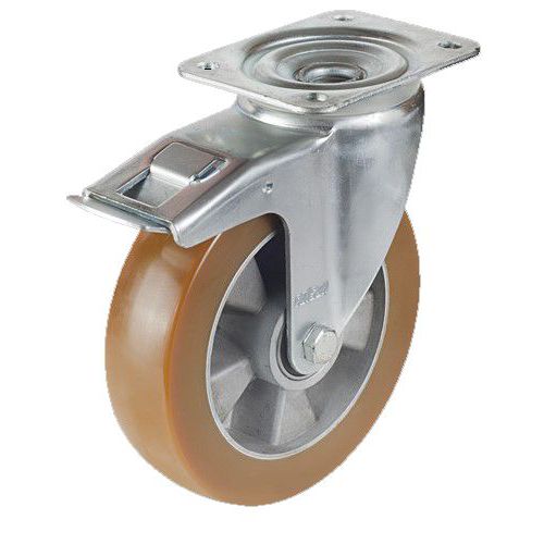 Transportní hliníková kola s brzdou s polyuretanovým běhounem.