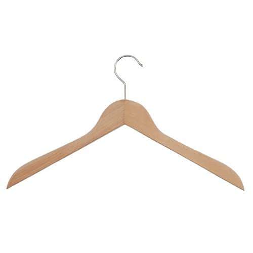 Řadový kovový věšák v jednostranném provedení s háčky a ramínky pro umístění ke stěně.