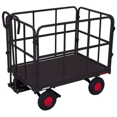 Ocelový ruční vozík se čtyřmi trubkovými bočnicemi, výška stěn 750 mm.