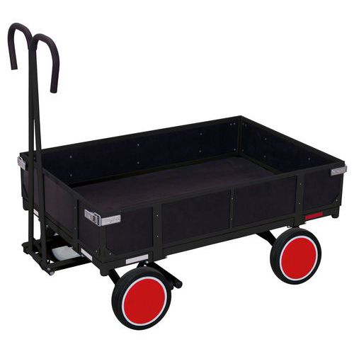Ocelový ruční vozík s plnými bočnicemi, výška bočnic 210 mm.