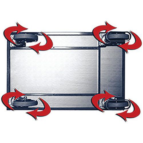 Sada čtyř pojezdových kol, z nichž dvě jsou otočná a dvě otočná s brzdou.