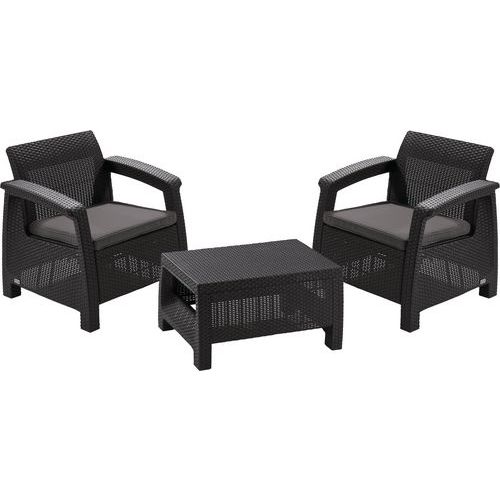 Jednoduchá montáž a údržba.Souprava je složena ze dvou křesel a stolku. Součástí balení jsou měkké podušky.Dodáváno v demontovaném stavu.