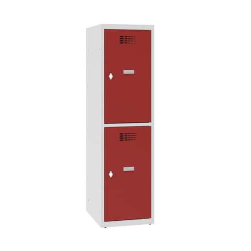Snížená školní šatní skříň, 8 oddílů, 300 mm, šedá/červená, otočný uzávěr