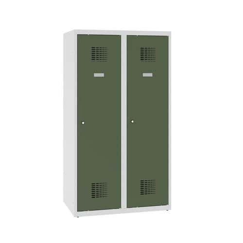 Svařovaná šatní skříň Vinco, 2 oddíly, 300 mm, otočný uzávěr, šedá/zelená