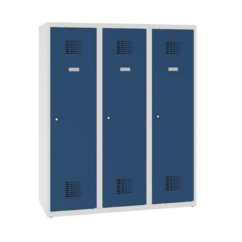 Snížená školní šatní skříň, 1 sloupec, 400 mm, šedá/tmavě modrá, tříbodový cylindrický zámek