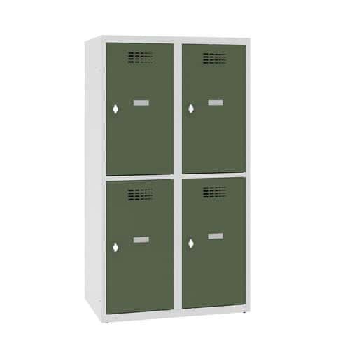 Snížené svařované šatní skříně se čtyřmi samostatně uzamykatelnými oddíly.