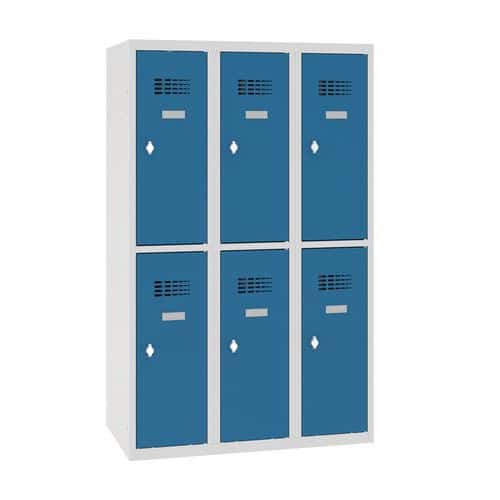 Uzamykání otočným uzávěrem na visací zámek (visací zámek není součástí dodávky).Šatní skříň dodávána bez vnitřního vybavení i visacího zámku, nezapomeňte si jej v případě potřeby objednat. Pokud chcete barevnost, tak zvažte ustavení dvou šatníků v různých barvách na sebe.