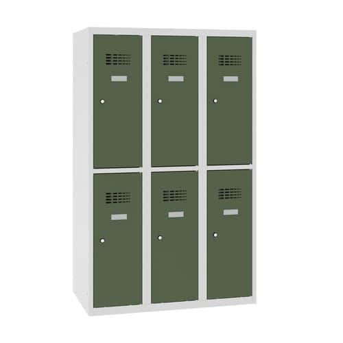 Snížené svařované šatní skříně se šesti oddíly vhodné do škol.