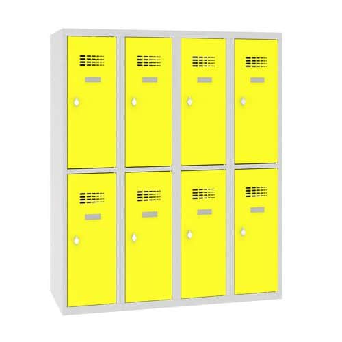 Uzamykání otočným uzávěrem na visací zámek (visací zámek není součástí dodávky).Šatní skříň dodávána bez vnitřního vybavení i visacího zámku, nezapomeňte si jej v případě potřeby objednat. Pokud chcete barevnost, tak zvažte ustavení dvou šatníků v různých barvách na sebe.