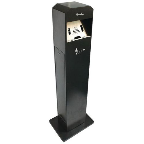 Kovový venkovní stojanový popelník vyrobený z oceli a odolný proti povětrnostním vlivům.