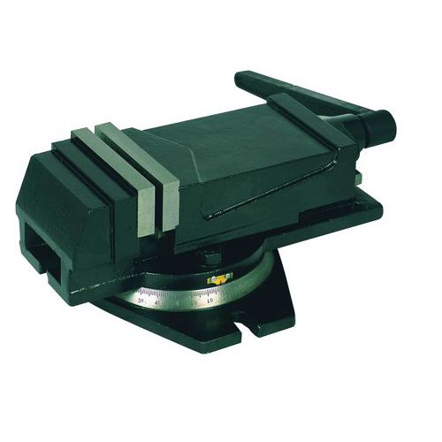 Kovový dílenský svěrák pro připevnění k pracovní ploše pomocí šroubů.