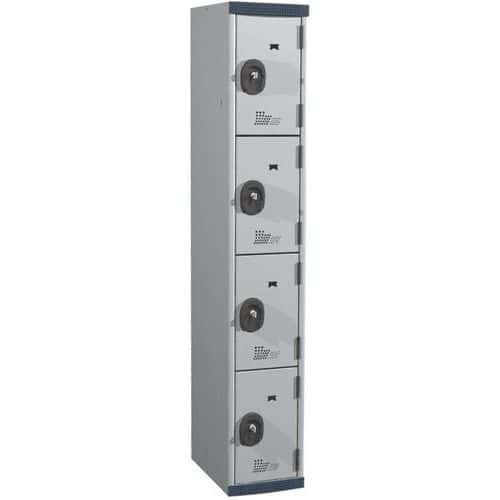 Svařovaná šatní skříň Vinco, 1 sloupec, 4 boxy, 400 mm, cylindrický zámek, šedá/hnědá