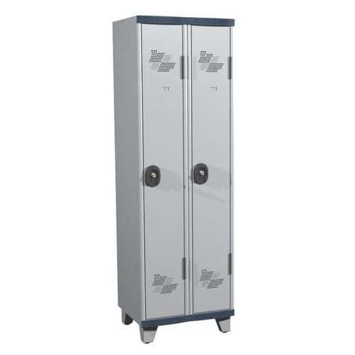 Uzamykání cylindrickým zámkem se dvěma klíči.Každý oddíl obsahuje: 1 pozinkovanou polici, 1 tyč na ramínka se 2 háčky, 1 nerozbitné magnetické zrcátko a 1 držák ručníků.