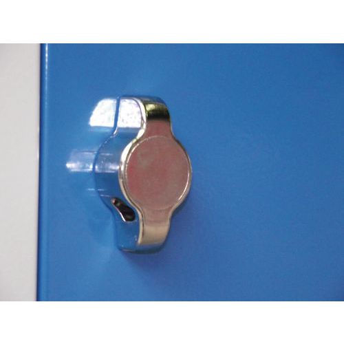 Montovaná kovová skříň se třemi oddíly do pracovní nebo školní šatny.